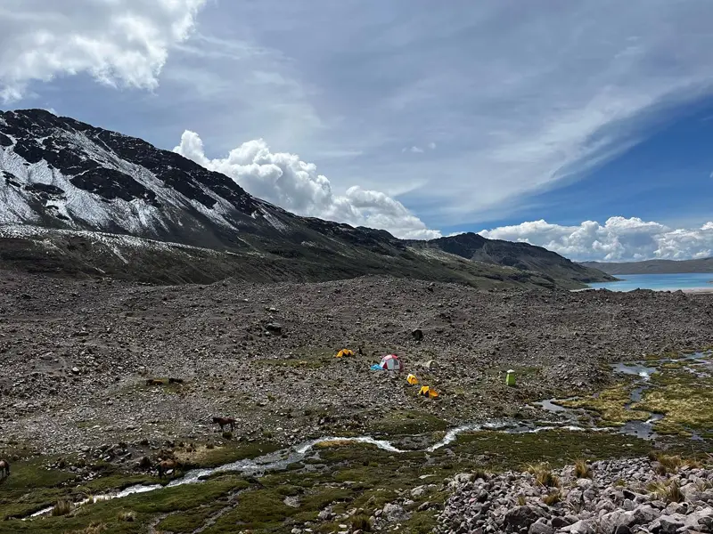 We wake you up at 5:00 am with coca tea delivered to your cabin. After breakfast, we pack our belongings and begin hiking uphill toward Arapa Pass (4,958 m). From the pass, we descend slightly to our lunch spot near Pucacocha Lake.